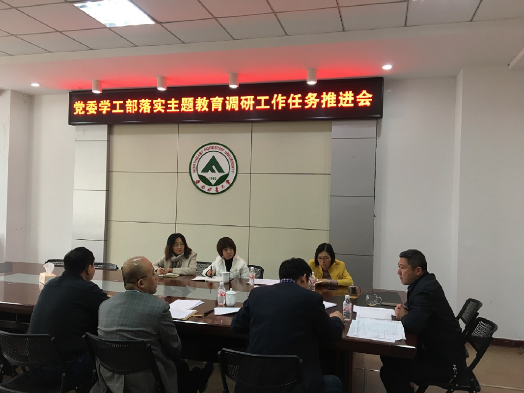 根据学校“不忘初心、牢记使命”主题教育工作部署,党委学工部党支部于11月6日,在综合办公楼219会议室召开落实主题教育调研工作任务推进会。总结梳理前期调研成果,推动有关问题解决。党委学工部领导班子成员、支部书记、支部委员、相关科室负责人参加了会议。
