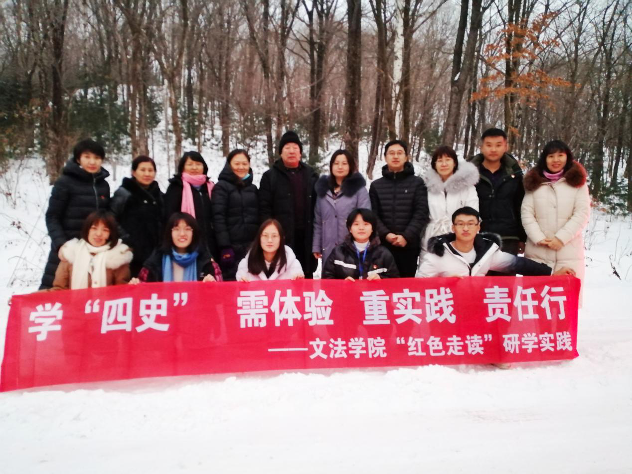 12月10日,文法学院党委组织由各党支部书记、专业负责人、师生骨干代表组成的研学实践组一行14人赴木兰县开展学“四史”暨深入学习抗联精神“红色走读”研学实践活动。